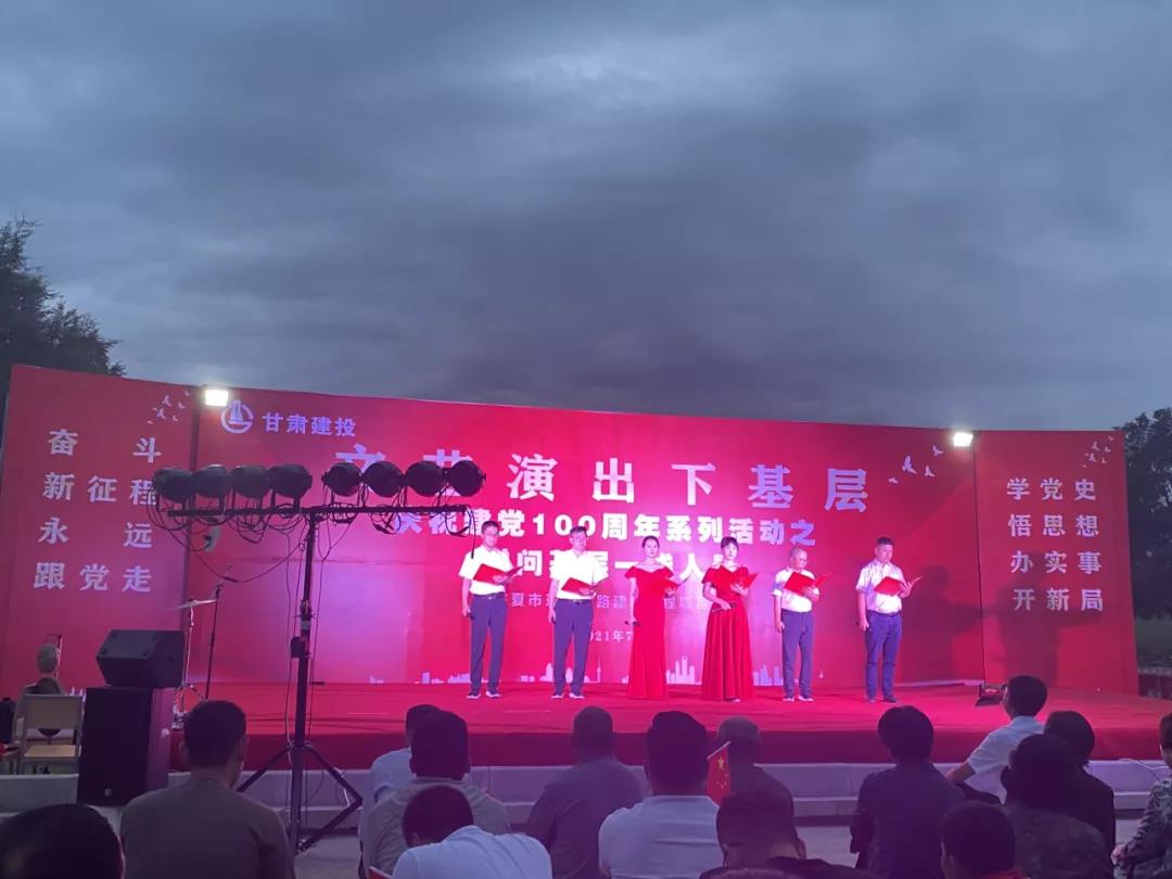 为喜迎中国共产党100周年华诞,响应文艺演出活动下基层政策。7月1日晚,由必赢242net官网临夏市环城北路建设工程项目部组织,隧道公司四公司临夏市环城北路建设工程四区承办,庆祝中国共产党建党100周年系列活动之-——慰问基层一线人员文艺汇演活动在四工区项目施工现场隆重举行。