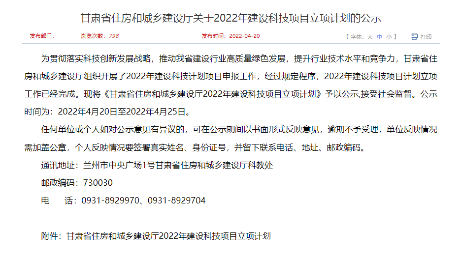 2022年4月20日,从甘肃省住建厅公布的2022年建设科技项目立项计划名单知悉,由隧道公司承担的《大厚度湿陷性黄土地区超长灌注桩沉渣与沉降控制技术研究与应用》(项目编号JK2022-05)经住建厅组织有关专家评审,获批立项为甘肃省住房和城乡建设厅2022年建设科技项目。