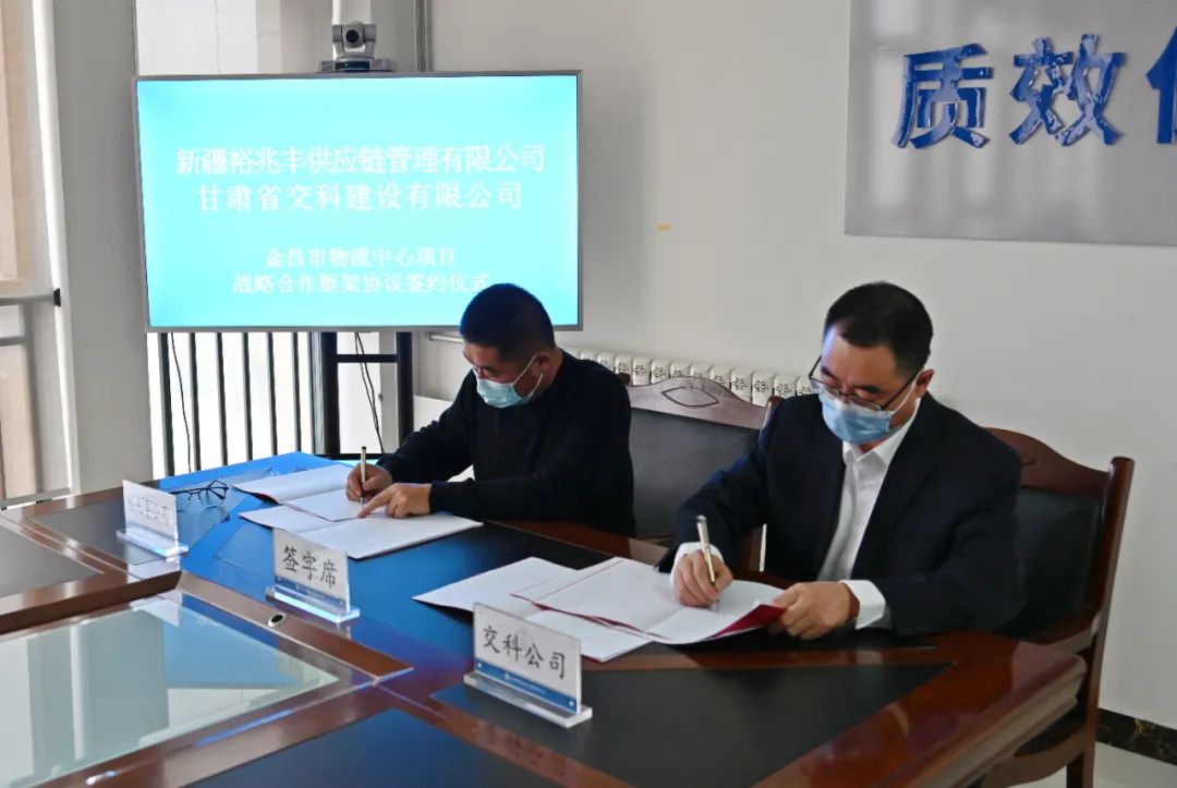 仪式现场,交科公司党委书记、董事长刘文太,新疆裕兆丰供应链管理有限公司董事长陈红斌分别代表双方签署项目协议。