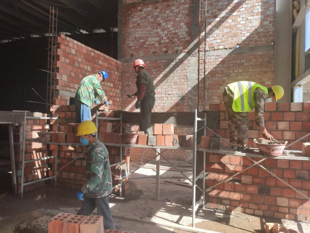 自本轮疫情发生以来,项目部按照进度目标,倒排工期,全面梳理工作内容,制定责任到人的工作计划,严把工程施工质量、严管作业安全、严控施工进度。疫情期间,累计完成精加工地坪浇筑200m²,联合车间砌筑70方,室外管网400米,钢结构彩板安装700㎡,钢结构防火涂料喷涂完成500㎡。现累计完成综合楼90% ,联合车间80% ,室外管网20%的施工任务。