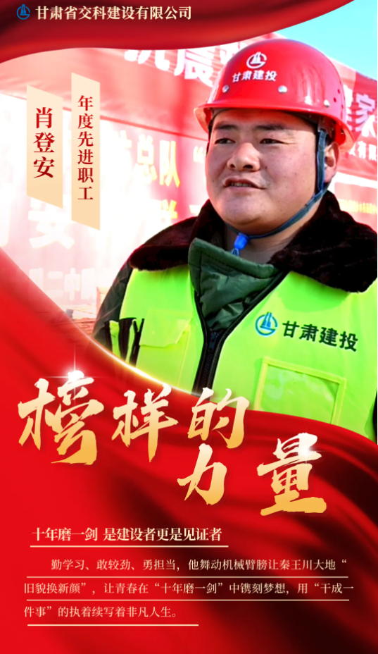 <p style="text-align: justify; text-indent: 2em;"><span style="font-family: 微软雅黑,Microsoft YaHei;">榜样是鲜活的价值观，有形的正能量，他们虽身处不同岗位，但为着同一个目标奋斗，在平凡中坚守初心，在坚守中绽放光芒，在高质量发展的新征程上，书写了无悔的奋进篇章。讲好交科故事，弘扬模范精神，交科公司推出“榜样的力量”栏目，今天，让我们走近先进典型，听听他们的故事！</span></p><p><br/></p><p style="text-align: center;"><img width="536" height="928" style="width: 443px; height: 751px;" src="../../hdupf/img/202404/20240419115612_510860.png"/></p><p style="margin: 0pt; text-align: justify; text-indent: 2em;"><span style="font-family: 微软雅黑,Microsoft YaHei; mso-spacerun: "yes"; mso-font-kerning: 1.0000pt;"><br/></span></p><p style="margin: 0pt; text-align: justify; text-indent: 2em;"><span style="font-family: 微软雅黑,Microsoft YaHei; mso-spacerun: "yes"; mso-font-kerning: 1.0000pt;">肖登安，2013年11月参加工作，现担任甘肃建投路政公司装载机司机。在项目施工中，他严格遵守机械操作规程，服从项目管理，踏实认真工作，苦练技能本领，十年来，第一批服务兰州新区发展建设的建设者中有他、第一支冲锋在前拉开项目建设的机械队伍中有他、第一个主动请缨前往积石山抗震救灾的建投青年中有他，他用十年磨一剑的韧劲，立志高远担大任，脚踏实地勇争先！</span></p><p style="margin: 0pt; text-align: justify; text-indent: 2em;"><span style="font-family: 微软雅黑,Microsoft YaHei; mso-spacerun: "yes"; mso-font-kerning: 1.0000pt;"><br/></span></p><p style="margin: 0pt; text-align: justify; text-indent: 2em;"><span style="font-family: 微软雅黑,Microsoft YaHei; mso-spacerun: "yes"; mso-font-kerning: 1.0000pt;">苦练技能本领 锤炼过硬素质</span></p><p style="margin: 0pt; text-align: justify; text-indent: 2em;"><span style="font-family: 微软雅黑,Microsoft YaHei; mso-spacerun: "yes"; mso-font-kerning: 1.0000pt;">如果说“十年磨一剑、干成一件事”，那么从一名初学者到成熟的“老司机”，肖登安便是凭着一腔干劲和韧劲，在机械操作手岗位工作中一路“摸爬滚打”，先后参与了兰州新区保障性住房建设项目A区、兰州新区纬一路东延长段、兰州新区纬五十四路、兰州银河国际地基处理工程、临夏环城北路等重点项目建设。勤学好问，善于思考，让他在各项目建设中，积累了经验，提升了技能，掌握了窍门，更是对自己的工作“斤斤计较”起来。</span></p><p style="margin: 0pt; text-align: justify; text-indent: 2em;"><span style="font-family: 微软雅黑,Microsoft YaHei; mso-spacerun: "yes"; mso-font-kerning: 1.0000pt;">“你就开个挖掘机，差不多铲平就行了，那么计较干嘛！”</span></p><p style="margin: 0pt; text-align: justify; text-indent: 2em;"><span style="font-family: 微软雅黑,Microsoft YaHei; mso-spacerun: "yes"; mso-font-kerning: 1.0000pt;">“差不就是差得多！平整度够嘛？深浅合适吗？你能保证一次性验收通过了？”</span></p><p style="margin: 0pt; text-align: justify; text-indent: 2em;"><span style="font-family: 微软雅黑,Microsoft YaHei; mso-spacerun: "yes"; mso-font-kerning: 1.0000pt;">肖登安凭借着认真负责的工作态度和高度的责任心，让经手的每一个项目土方场平等工作都实现了一次性验收通过，保障项目建设按工期计划顺利推进。而告诉笔者“要因为我的原因导致工期耽误了，我快找个地缝钻进去吧！”</span></p><p style="margin: 0pt; text-align: justify; text-indent: 2em;"><span style="font-family: 微软雅黑,Microsoft YaHei; mso-spacerun: "yes"; mso-font-kerning: 1.0000pt;"><br/></span></p><p style="margin: 0pt; text-align: justify; text-indent: 2em;"><span style="font-family: 微软雅黑,Microsoft YaHei; mso-spacerun: "yes"; mso-font-kerning: 1.0000pt;">勇挑重担敢担当 真抓实干善作为</span></p><p style="margin: 0pt; text-align: justify; text-indent: 2em;"><span style="font-family: 微软雅黑,Microsoft YaHei; mso-spacerun: "yes"; mso-font-kerning: 1.0000pt;">积石山地震发生后，肖登安与公司第一批抗震救灾队员们第一时间抵达受灾现场。“当地昼夜温差极大，凌晨收工后只能在零下十几度的车里短暂休息！”所有队员们并没有因为条件艰苦而退缩，他和大家一样，心里只想着怎么能让灾区的老百姓们渡过难关！</span></p><p style="margin: 0pt; text-align: justify; text-indent: 2em;"><span style="font-family: 微软雅黑,Microsoft YaHei; mso-spacerun: "yes"; mso-font-kerning: 1.0000pt;">连续几天灾区余震不断，导致已出现倒塌、裂缝的民房危险系数进一步加大，为保障灾区群众生命安全、畅通救援通道，肖登安和队员们接到紧急任务后，率先处置完成石塬镇肖红坪村、陶家村坍塌民房和危房20余间，及时消除受灾群众安全隐患，打通灾民集中聚居地交通动脉，为抢险救灾物资运送、周边百姓正常通行提供了有力保障，加速救援工作的快速推进。</span></p><p style="margin: 0pt; text-align: justify; text-indent: 2em;"><span style="font-family: 微软雅黑,Microsoft YaHei; mso-spacerun: "yes"; mso-font-kerning: 1.0000pt;">在顺利完成积石山石塬乡肖红坪村、陶家村2000余平方米场平作业任务，他和队友们全力克服泥浆层厚、冻土层夹杂等不利因素影响，连续昼夜施工，为安置点建设工作争取到宝贵救援时间，提前为移动安置板房搭建腾出了工作面，确保后续救援工作安全有序推进，率先完成安置点建设任务，确保了800余名受灾群众及时得到妥善安置。</span></p><p style="margin: 0pt; text-align: justify; text