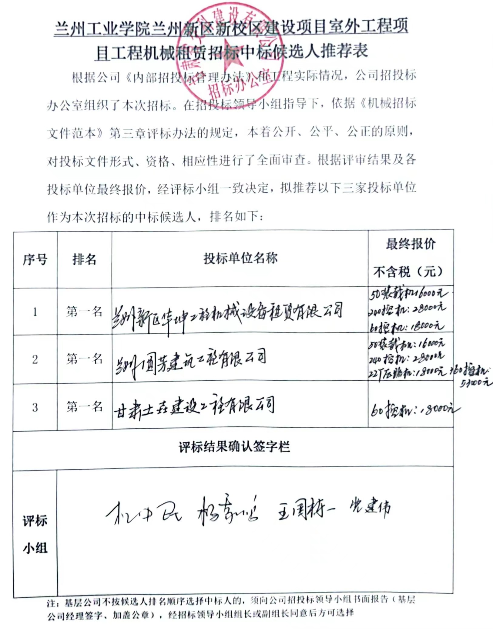 兰州工业学院兰州新区新校区建设项目室外工程项目中标候选人及中标通知书