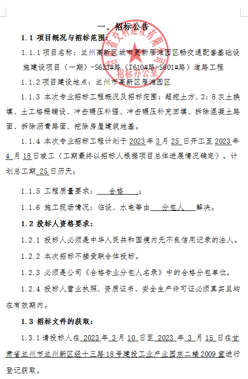 <h3>兰州高新城市更新雁滩园区畅交通配套基础设施建设项目（一期）-S633#路（T610#-S601#路）道路工程路基处理施工-招标公告</h3>