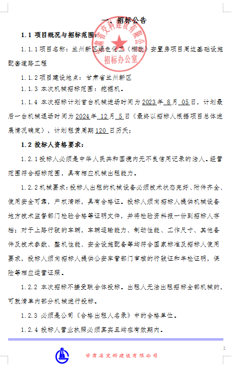<h3>兰州新区绿色化工（棚改）安置房项目周边基础设施配套道路工程机械租赁招标公告</h3>