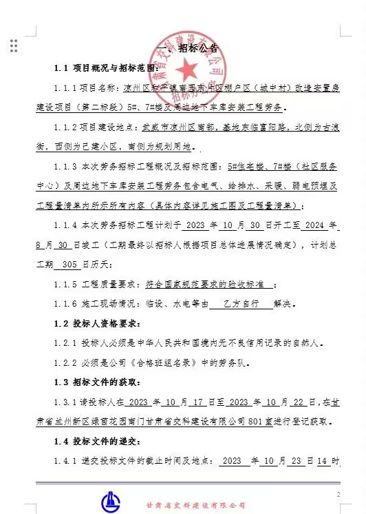 凉州区和平镇南园东片区棚户区(城中村)改造安置建设项目(第二标段)5#、7#楼及周边地下车库安装工程项目劳务招标公告