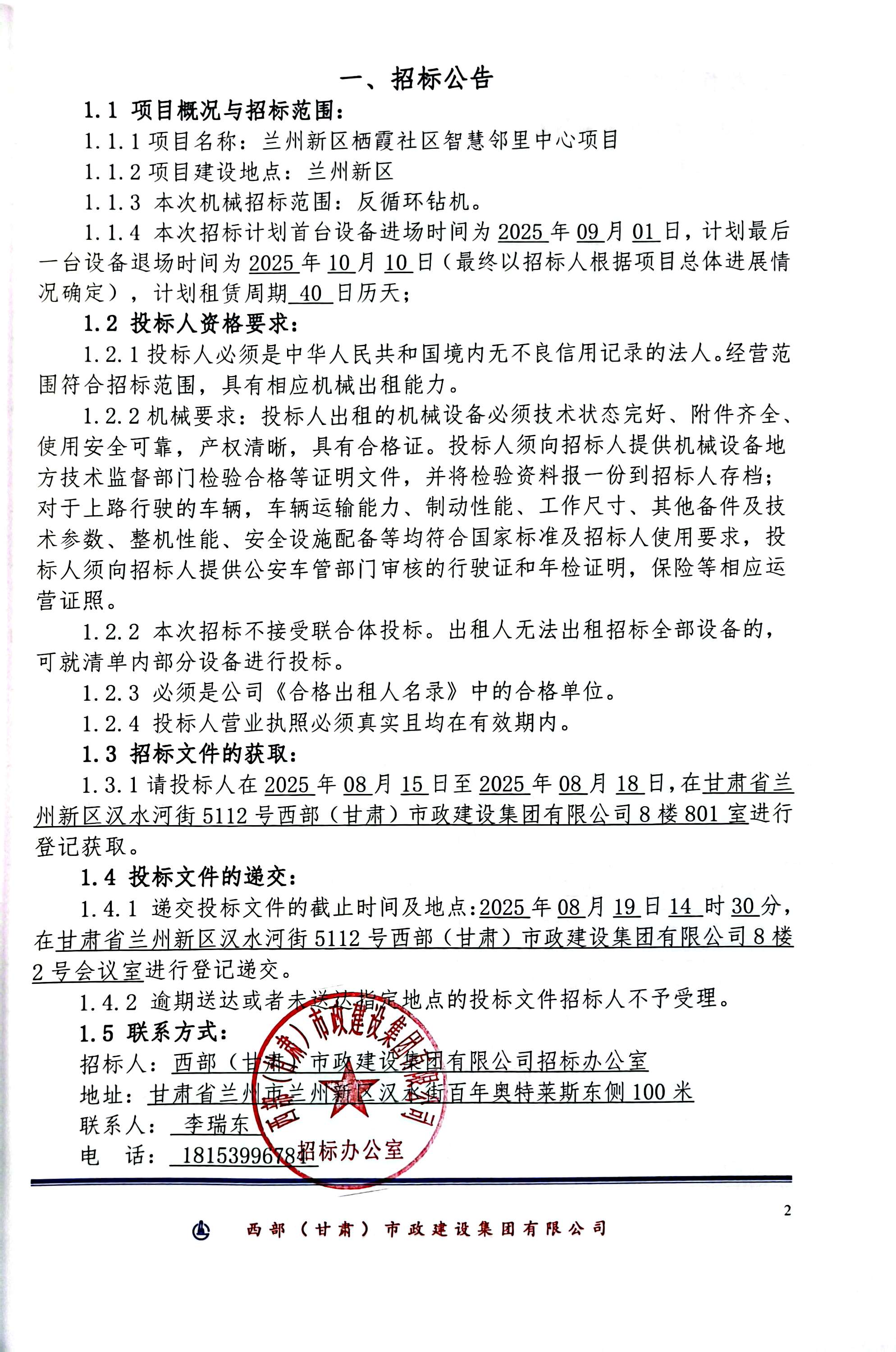 兰州新区栖霞社区智慧邻里中心项目-机械租赁-招标公告